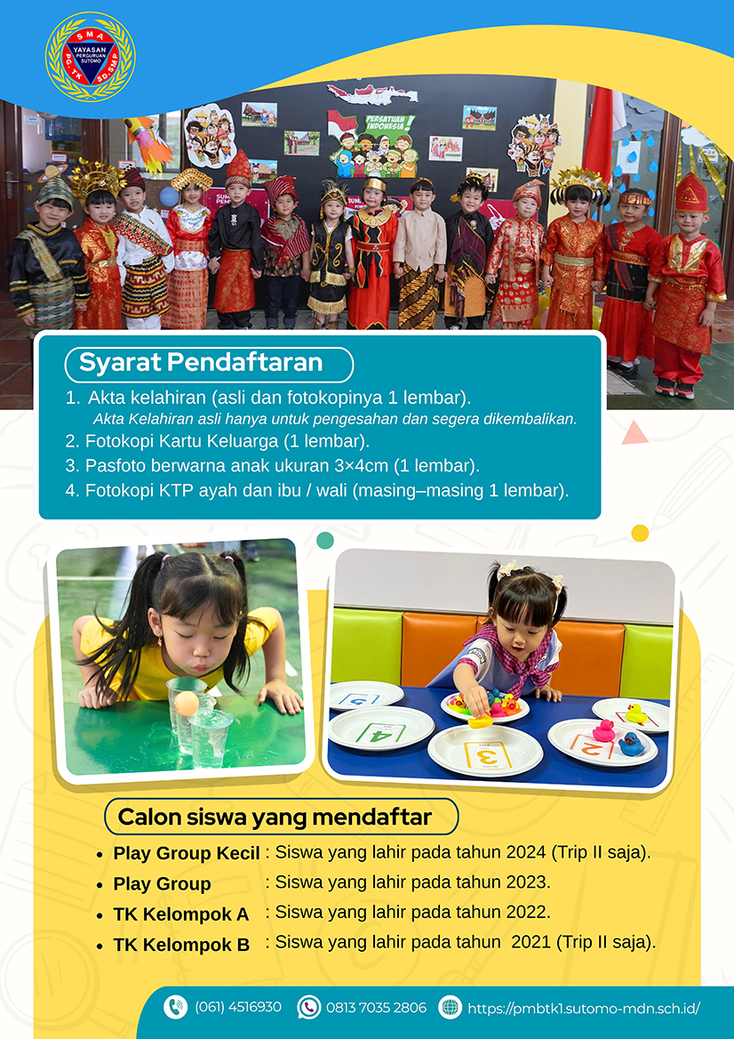 - Orang tua calon siswa harus menandatangani surat pernyataan dan mematuhi peraturan yang berlaku di PG-TK Sutomo 1.